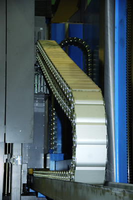 图解:椿本佳宝来公司S/SX 1800系列近10米的钢制拖链可在rofiMill 8500/120-G铣床中保护电气及液压电缆